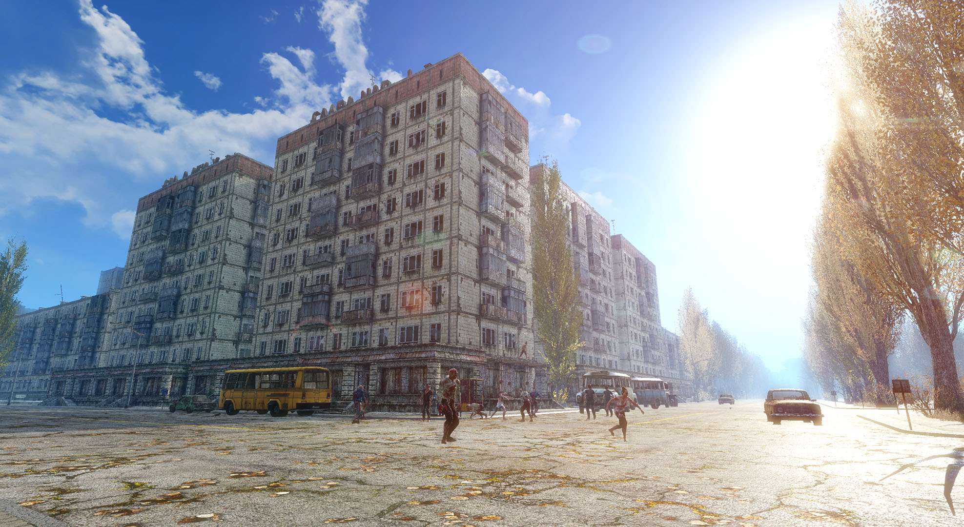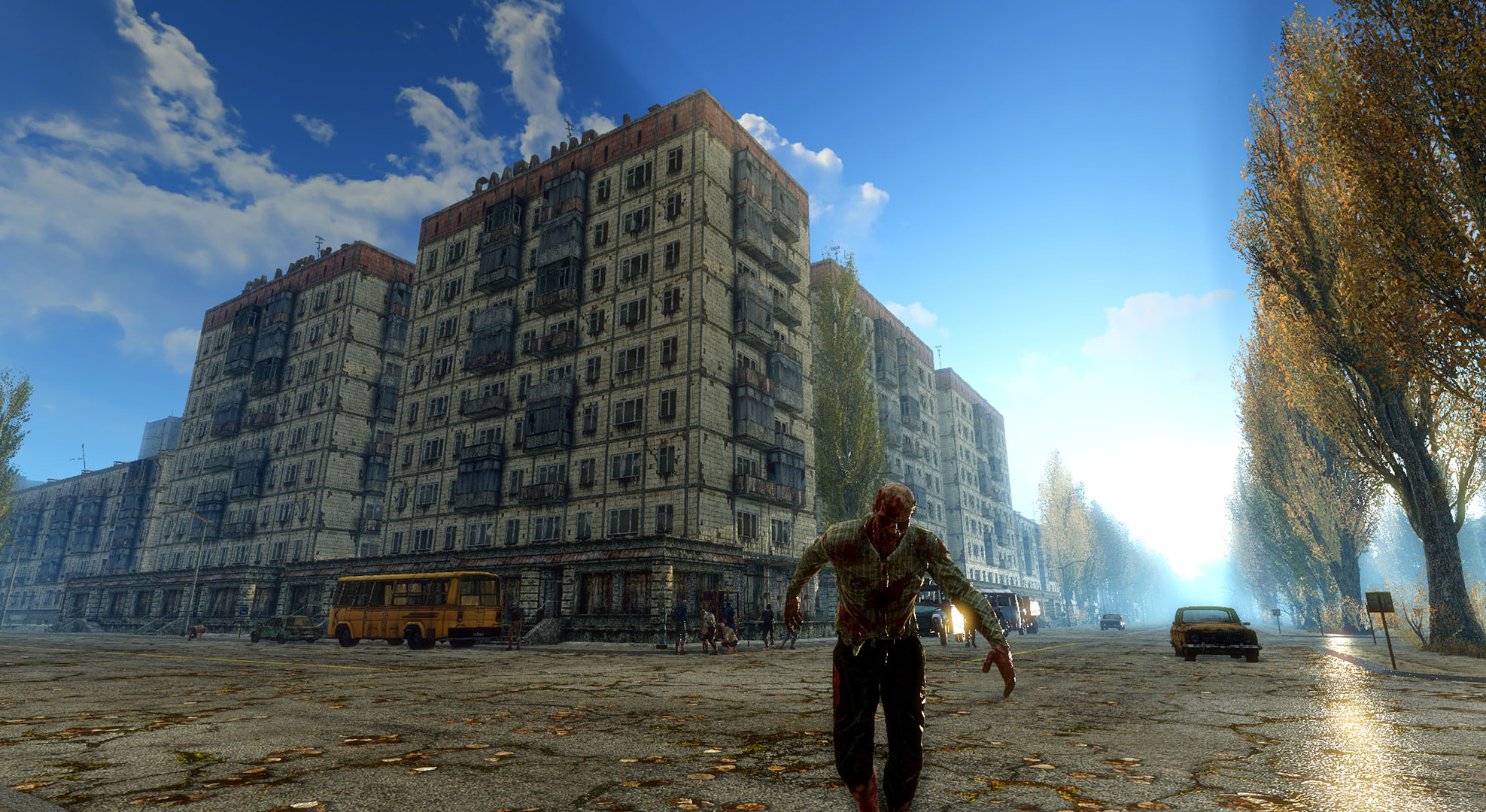 Scavenge for resources inside any building and explore landmarks of Pripyat such as Hotel Polissya, the cultural center, Cinema Prometheus, the swimming pool, and abandoned apartment blocks. Craft and choose your gear wisely, and use campsites to safely pass the night.